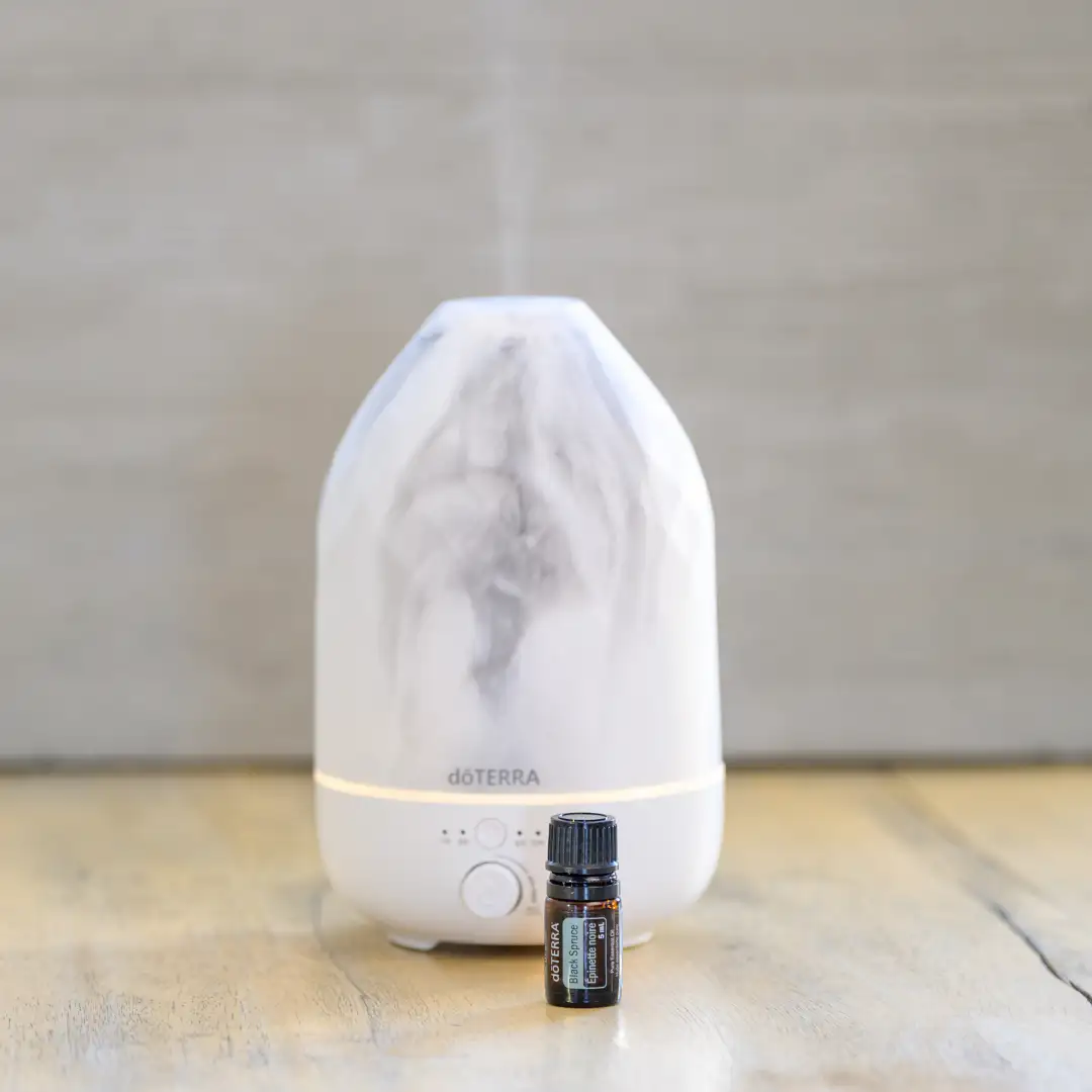 - Mischen Sie 1– 2 Tropfen des ätherischen Öls Black Spruce mit Fraktioniertem Kokosöl und massieren Sie es für eine wohltuende Wirkung in Ihre Haut ein